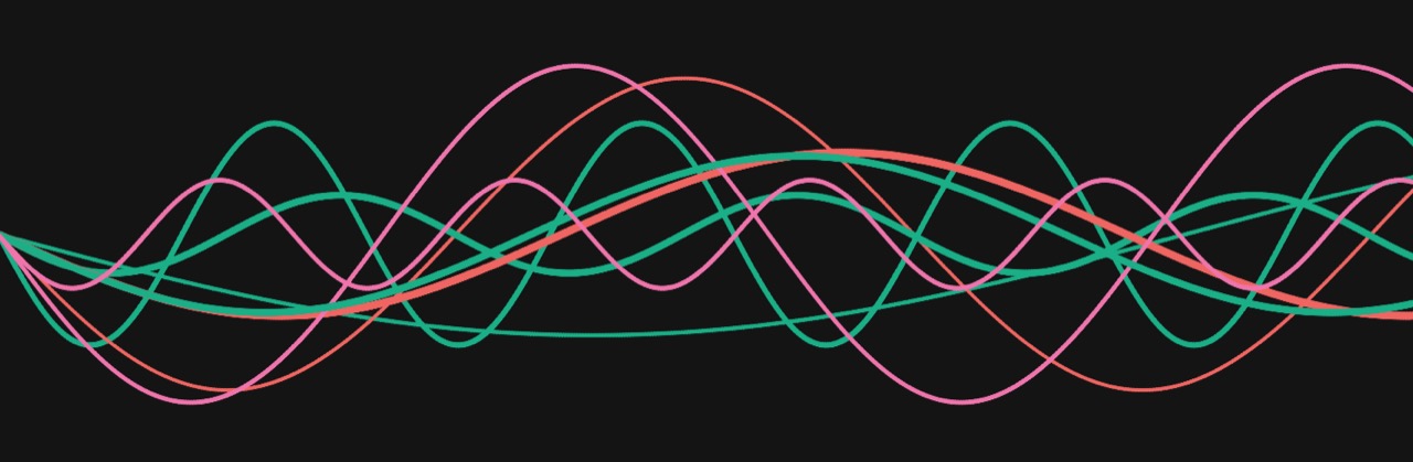 The source code and working example for creating sine waves with P5.js can be seen here. Just refresh the page to get a different outcome each time.
