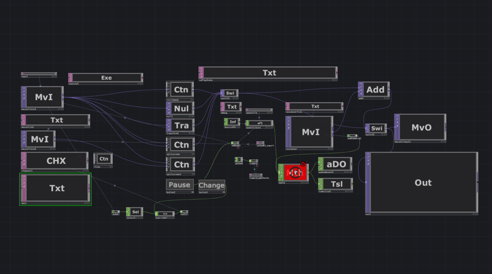 On Thursday I had a call with a friend in New York about an exciting new, experimental project that I have to say I'm really excited about. I can't say what it is just yet, but it sees me creating this thing in Touch Designer, something I've wanted to use for some time but never found the right project till now. I forgot how much fun using a node based system like Touch Designer was and it's weird how my latest pieces of work have both involved a node based workflow. I'm not talking about Node.js but the procedural workflow of graphical nodes wired together, something that Houdini also uses. Many years ago I was really into Max/MSP which used a similar system. I find it a powerful way to work that is very akin to a sketch-like creative process. In the course of digging into Touch Designer I've been having to learn more Python related things and its weird (to me) tab based syntax.