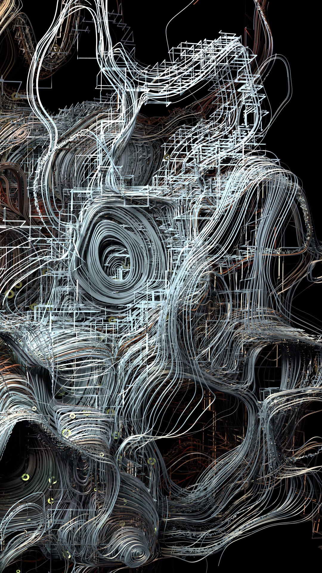 After scraping thousands of images from Instagram using the hashtag #myhappylife I used a GAN to create a latent walk through of these images. I then fed this into the system I had created, inspired by the grammar of machine circuity with the linear, grid-like nature of lines and tracks and pads alongside the more organic looking lines that are more about feel than sense, itself inspired by the dynamic flamboyant nature of art movements such as the Baroque and Rococo. This series of works is very much a combination of the aesthetics of machines and my own artistic biases — things that make me happy. Can a machine truly understand and create happiness? That remains to be seen but I continue to be fascinated by the journey ahead.