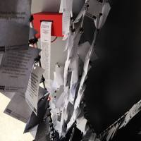 I designed and built eight printers, using the shape of the Bravo logo, that would print out Twitter collected messages at set intervals, all driven by a bespoke back end system.