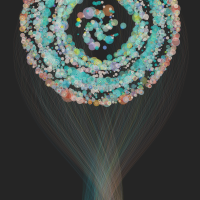Based on the same mathematics that create the head of a Sunflower, time explodes outwards from the centre with each point representing one minute giving a possible 4320 points — the number of minutes in three days — to cover the day before, during and after the launch of 4G.