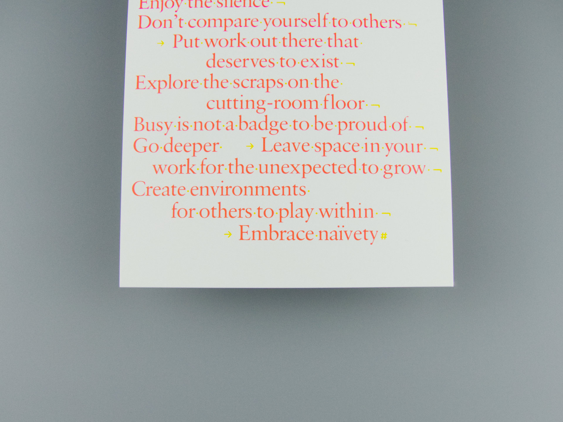 A spin-off from the original Notes to Myself, Manifesto for Myself is a limited edition A5, two-colour screen print featuring some of my personal thoughts on creativity I've jotted down over the years.