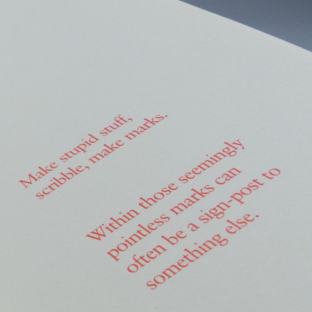 The notebook features a selection of thoughts on making things, together with places for you to make it your own using the spaces in-between and the code-made grids.