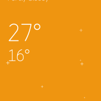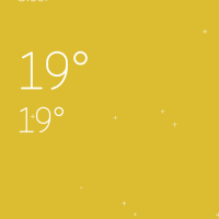 The background colour indicates the maximum temperature whilst text displays the high and low temperatures as well as a description for the conditions.