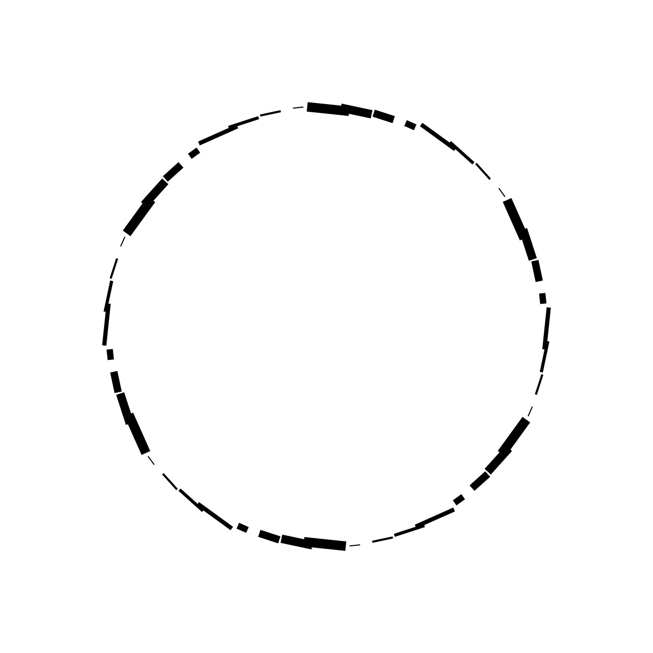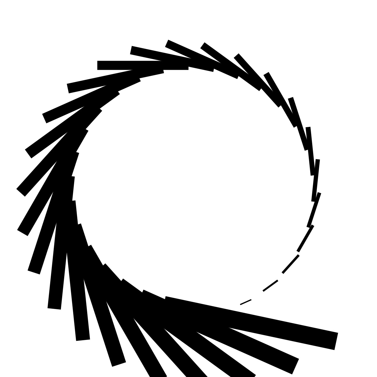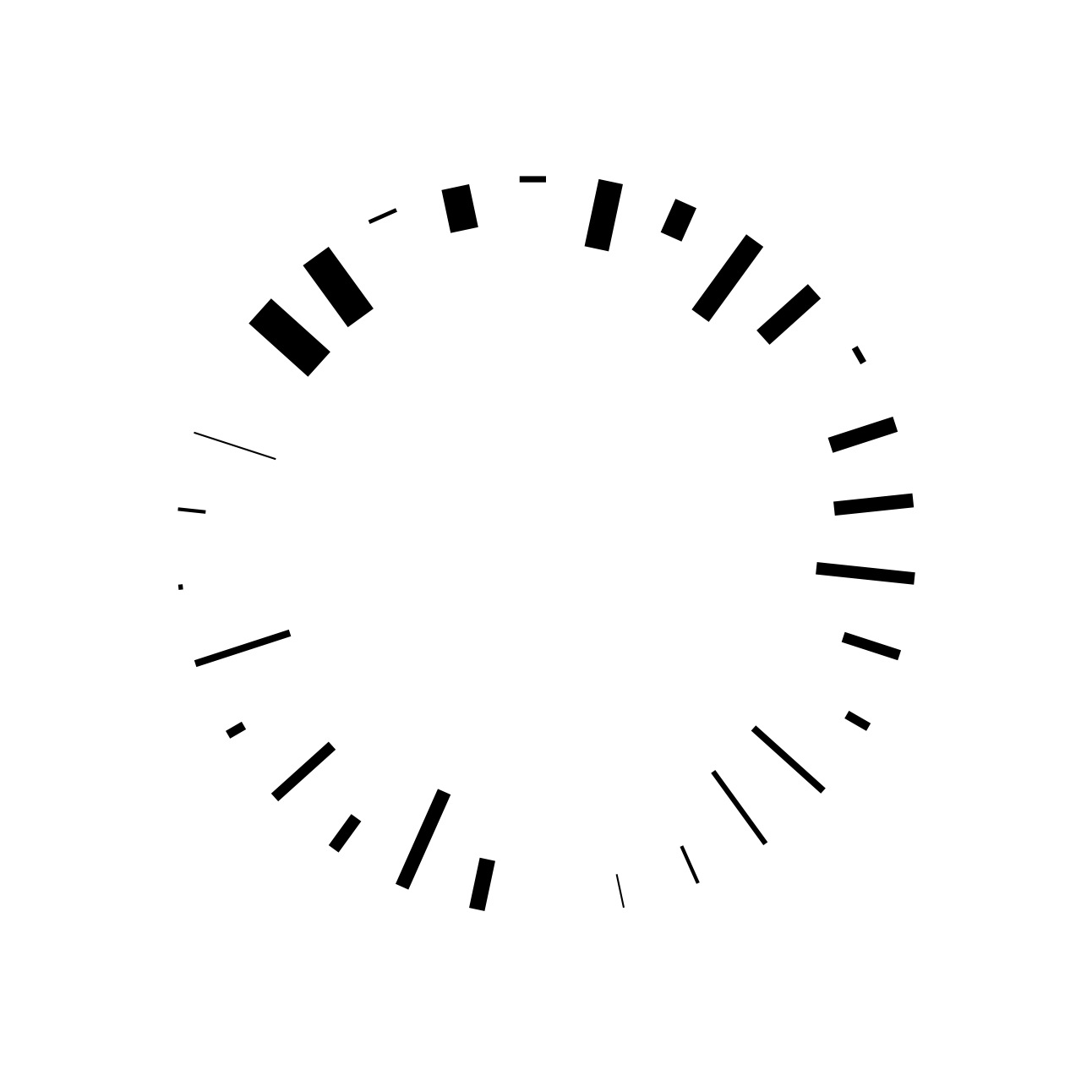 Using the same core algorithm – objects distributed around a centre point – different rhythms and patterns emerge by altering the size and shape of those objects. shorturl: http://daweso.me/WlUm6a