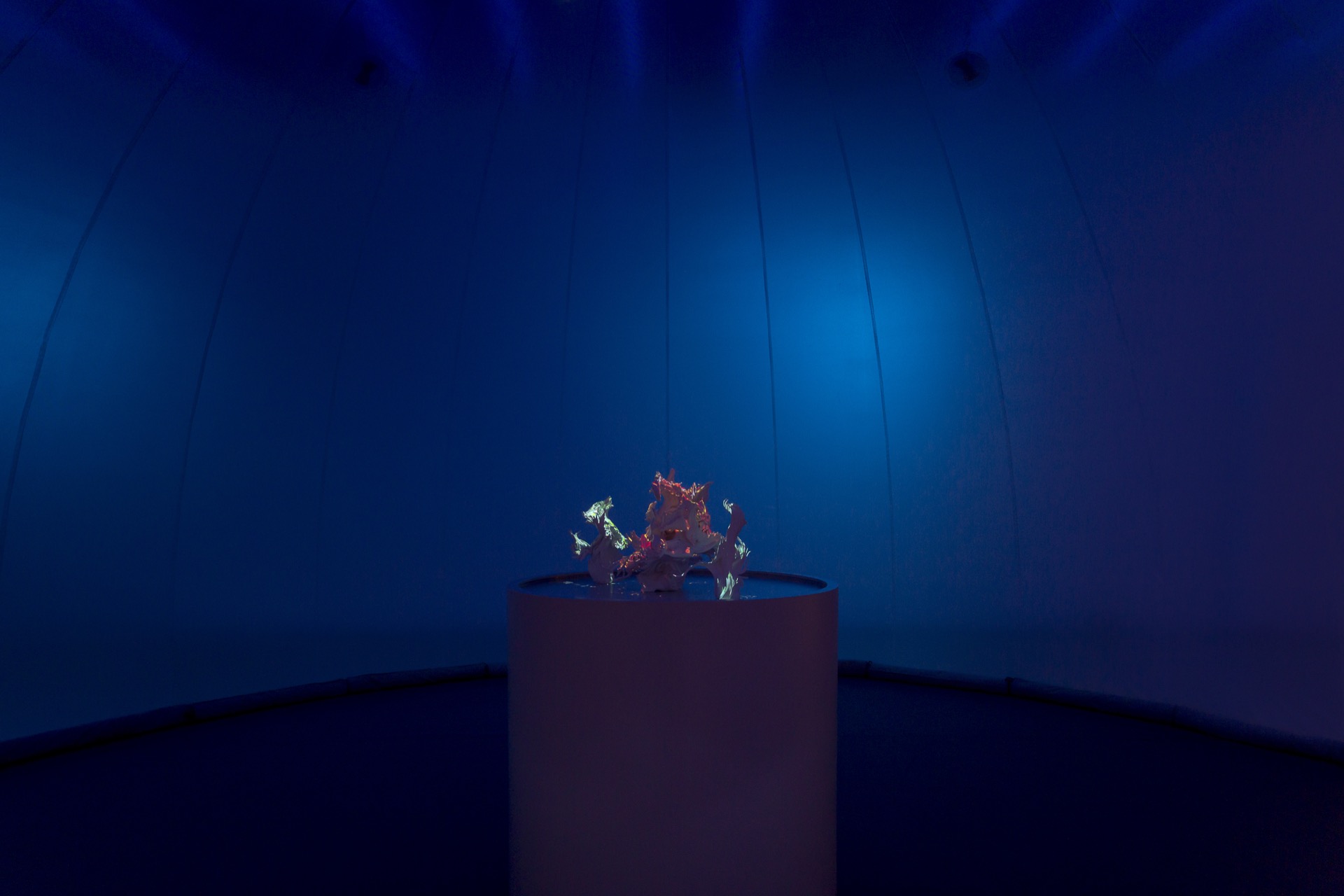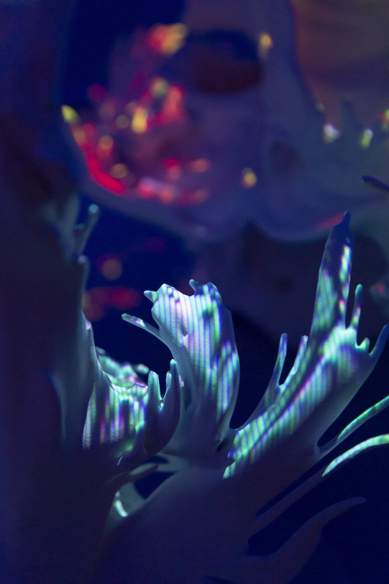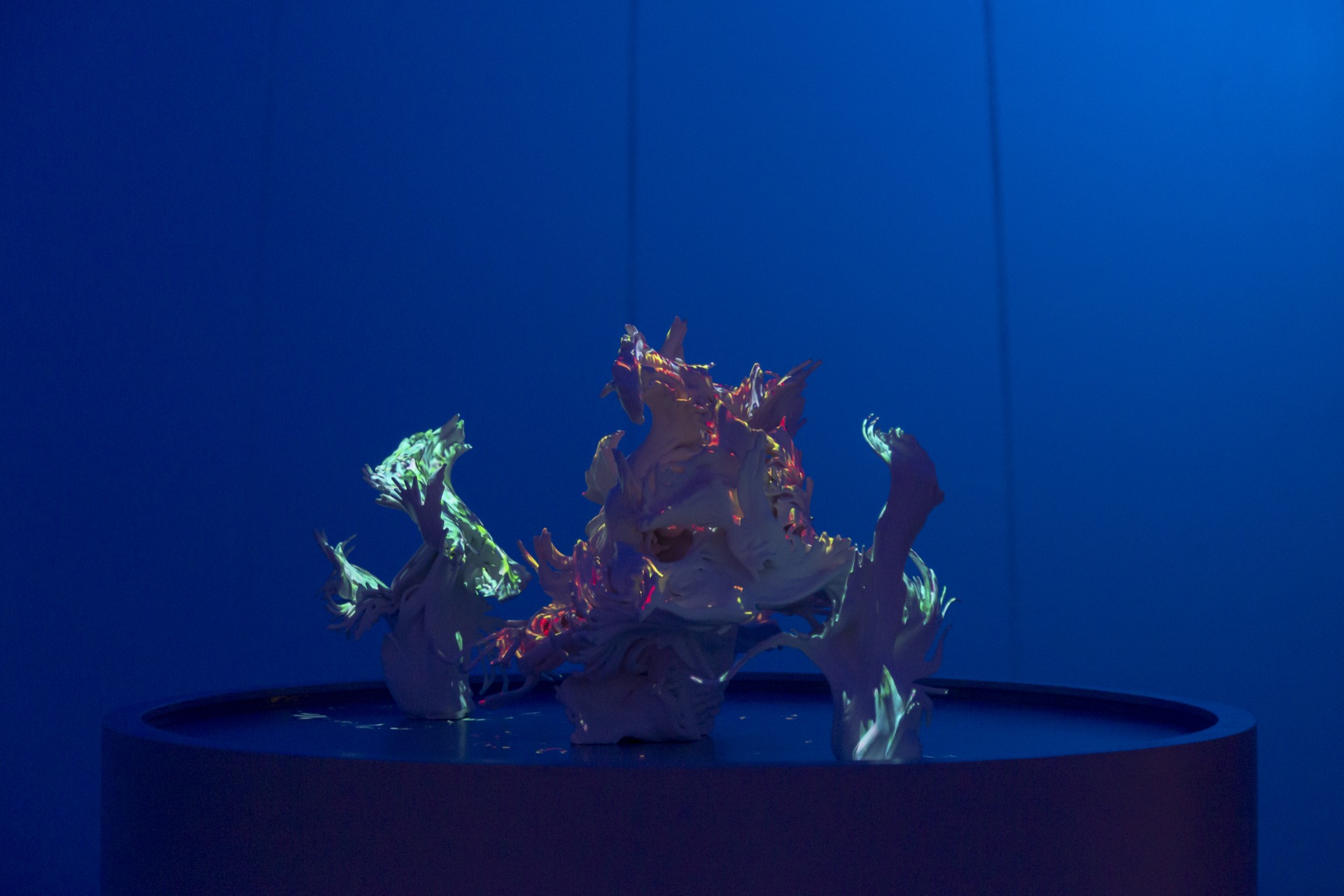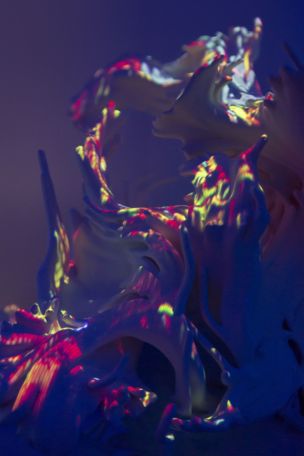 Using official passenger data from Barcelona airport, Passengers: BCN reveals the causal effect of the COVID pandemic from 2019 – 2021 realised as physical data-driven sculptures fused with digital projection.